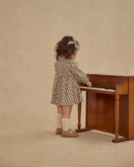 Our long sleeve Capri Dress features a darling smocked bodice and a flowy skirt. Coordinating bloomers included with sizes 0-3M - 18-24M.